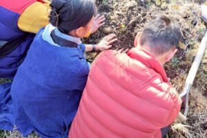 一人でも、いろんな発見をしながら楽しみながら田んぼのお手入れをしてるようす。