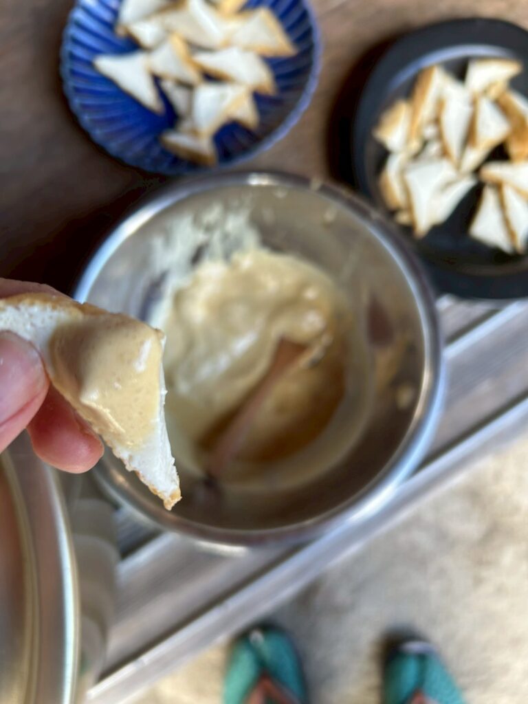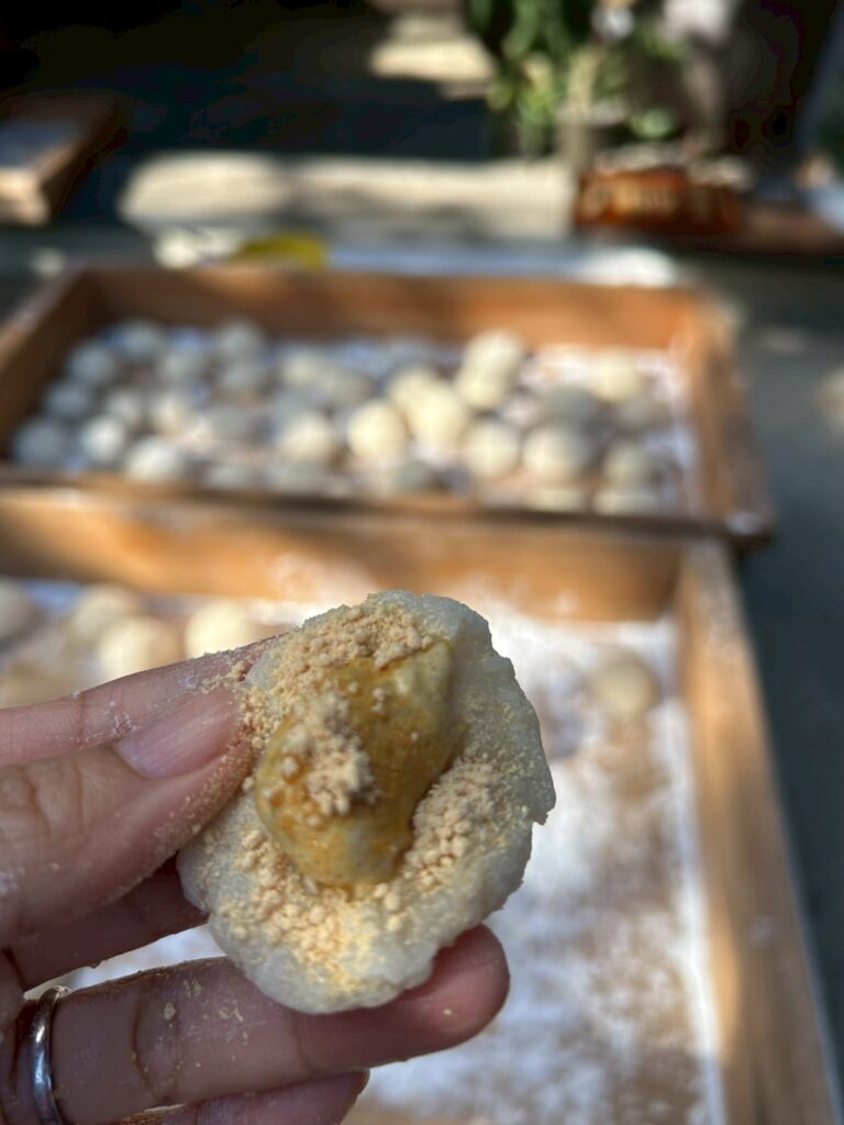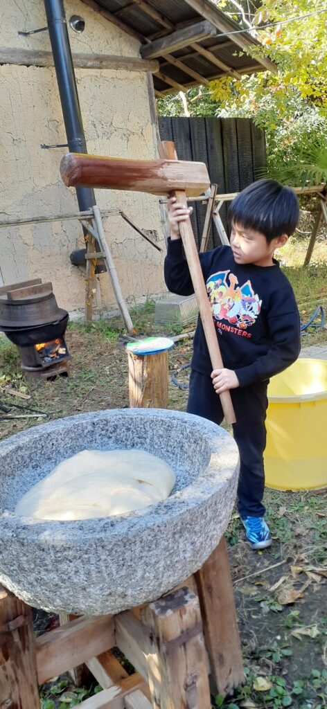 つきたて餅に、この灰汁を乗せて、さらにきなこをかけたコレ↓