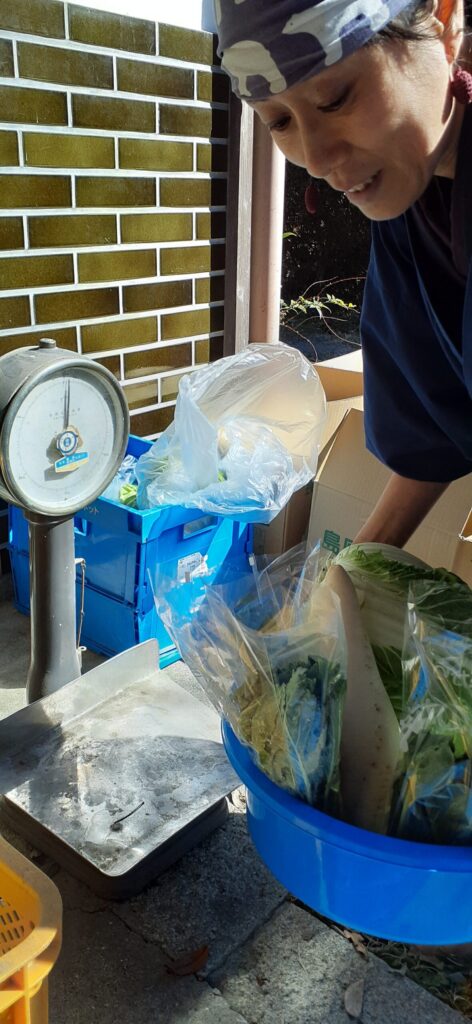 自分で自分の野菜を選び、計量し、