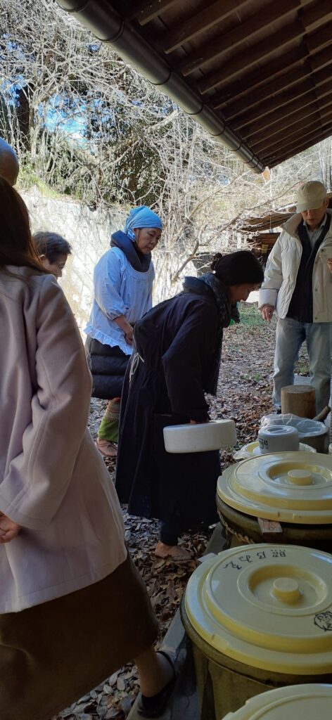 仮漬け途中の樽の様子を見たりし